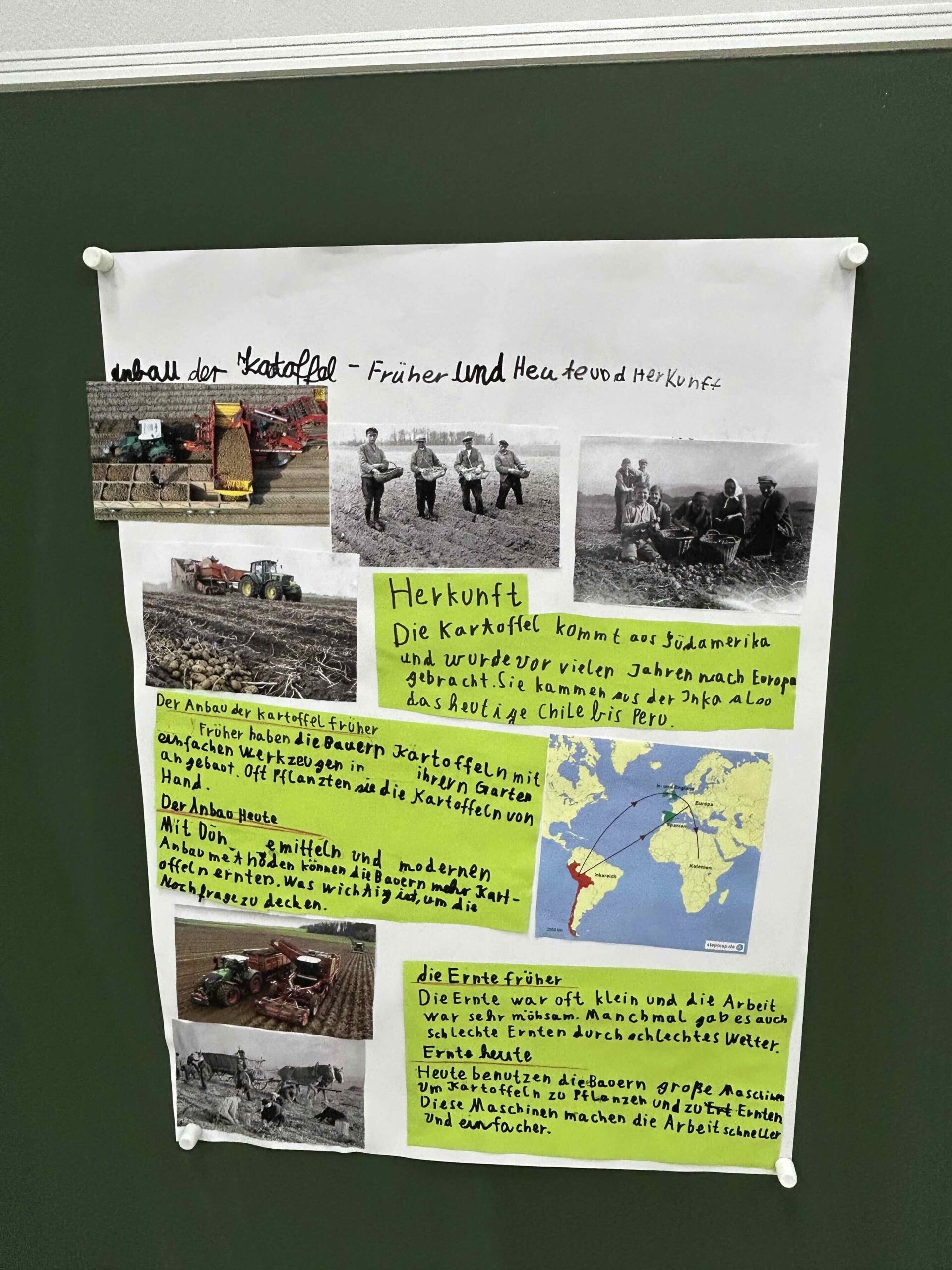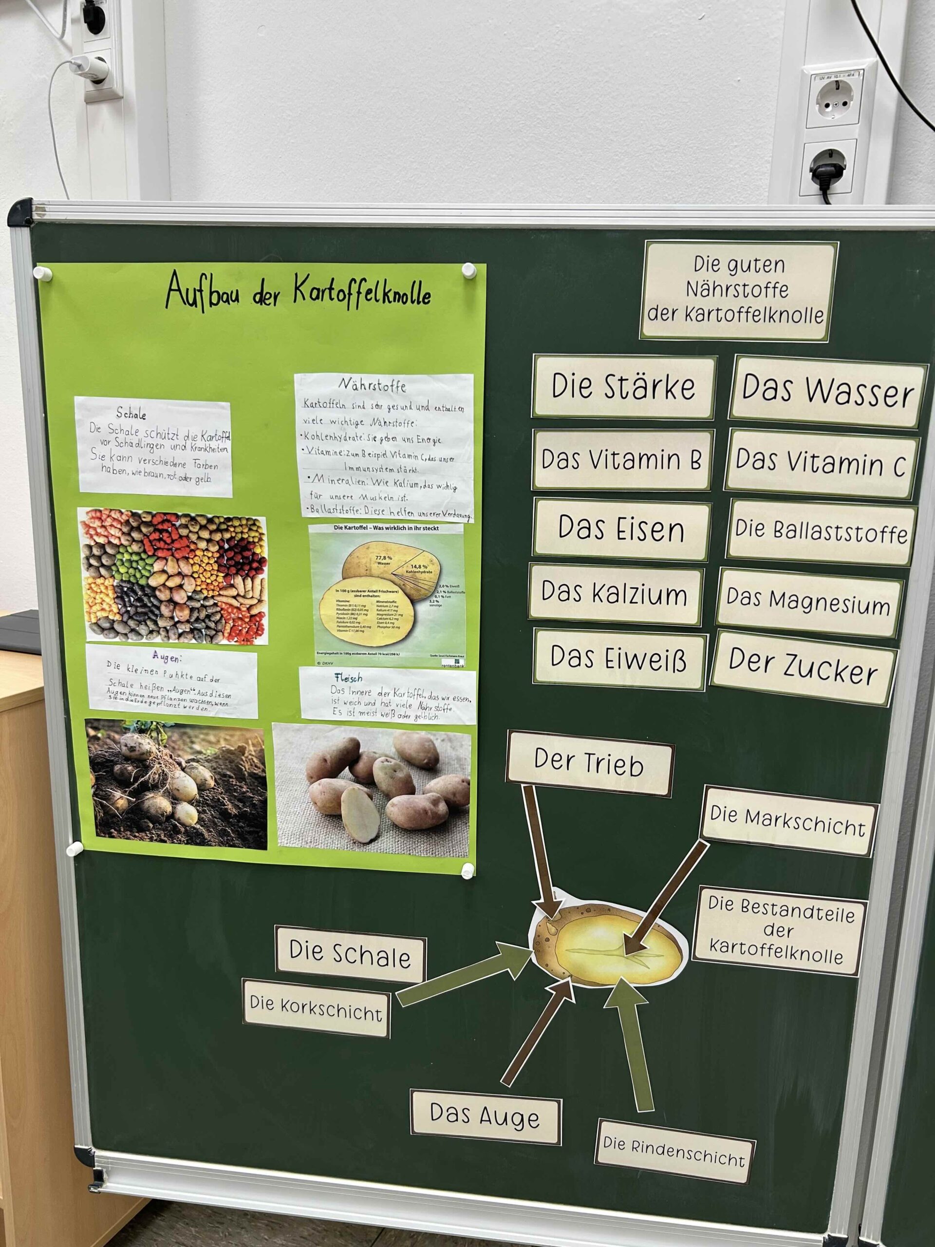 Im Vorfeld der Ausstellung erlebten die Schüler eine aufregende Kartoffelernte. Dabei erfuhren sie nicht nur, wie Kartoffeln wachsen und wo sie herkommen, sondern auch, dass die Knolle wertvolle Inhaltsstoffe wie Vitamine, Mineralien und Ballaststoffe enthält. Zudem beschäftigten sie sich mit den Schädlingen, die Kartoffelpflanzen bedrohen können. Diese Themen wurden durch Plakate und Präsentationen anschaulich aufbereitet und während der Ausstellung den Besuchern erklärt.