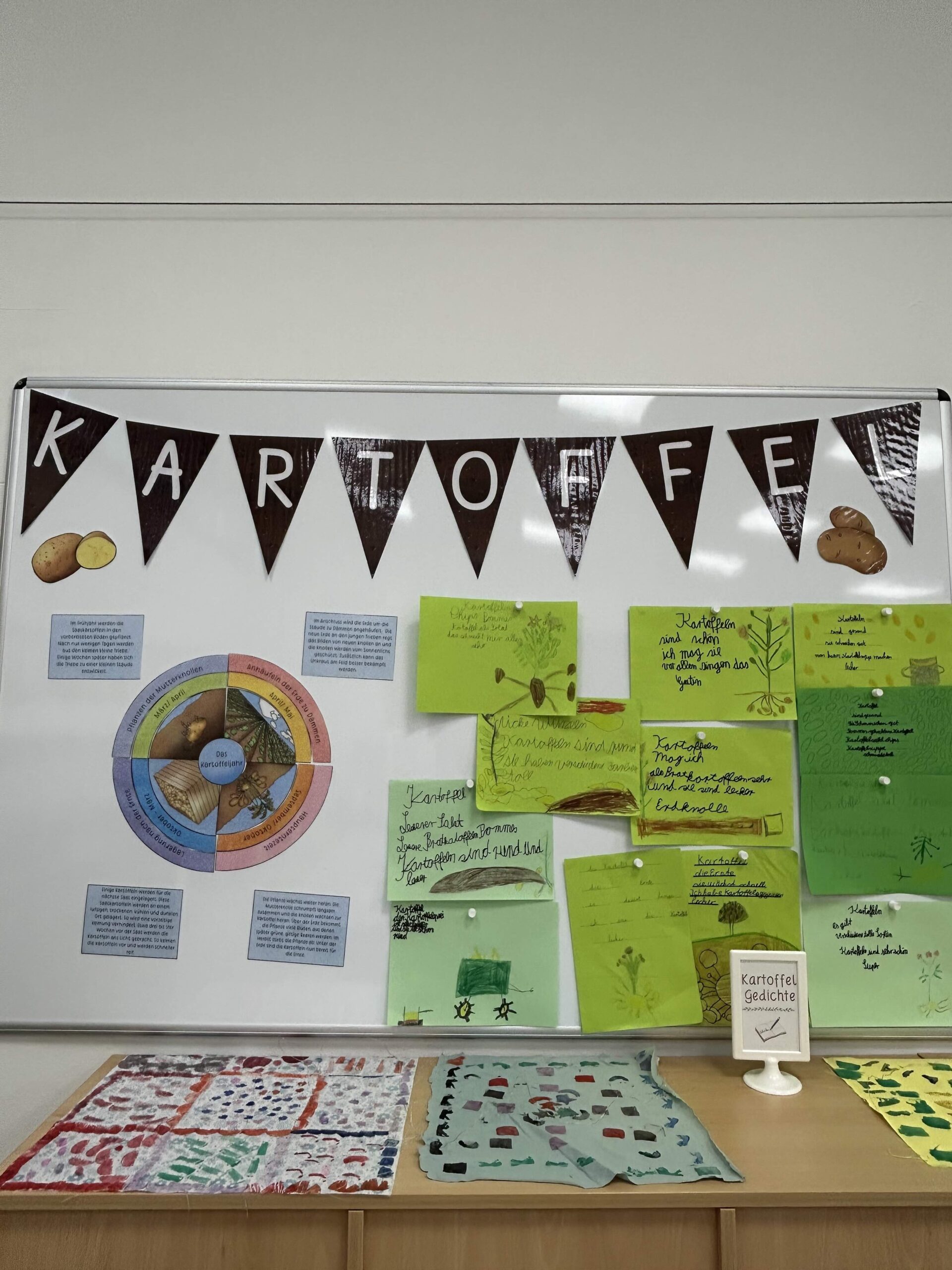 Am vergangenen Wochenende fand an unserer Grundschule das Herbstfest statt, bei dem unsere Klasse und die 3. Klasse ganz im Zeichen der Kartoffel standen. Die Ausstellung war das Ergebnis intensiver Sachunterrichtsstunden und zweier lehrreicher Projekttage, in denen die Kinder viel über die Kartoffel lernten und ihre kreativen Fähigkeiten unter Beweis stellten.