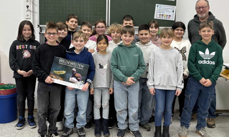 Wie immer zu Jahresbeginn verteilte er auch in diesem Januar den Schulkalender Wilde Welten für das Jahr 2026 in allen vier Klassen.